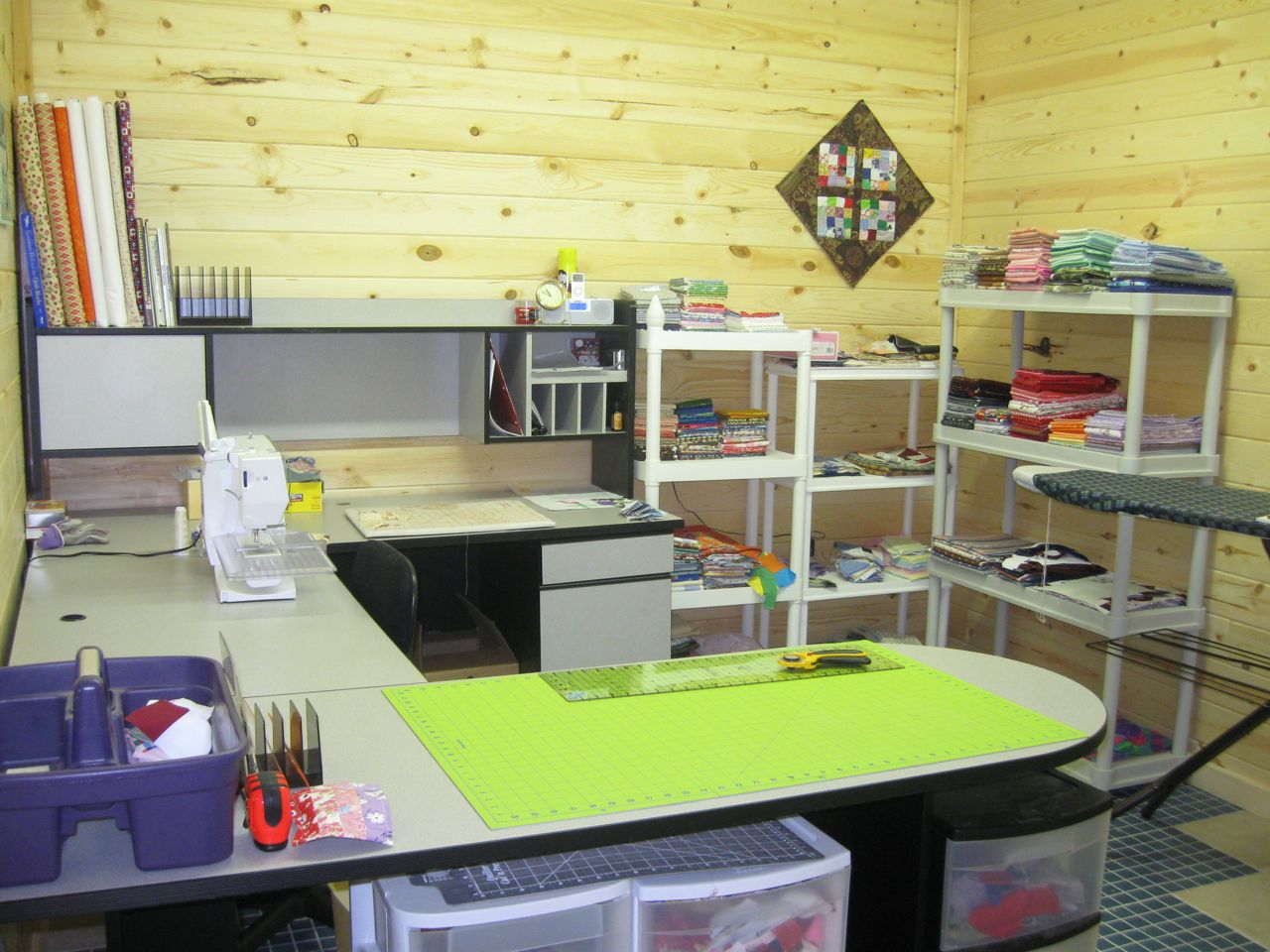 shelves (the big one is new!) just ready for more fabric!