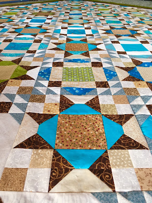 Deciding on the green, a couple of hours later resulted in a complete 81" x 95" flimsy, ready for quilting.